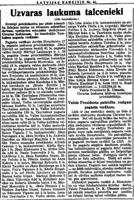 24 - vēsture - Ziedotāji no Taurkalnes (Valles) pagasta Uzvaras laukuma iekārtošanai 1937. gadā